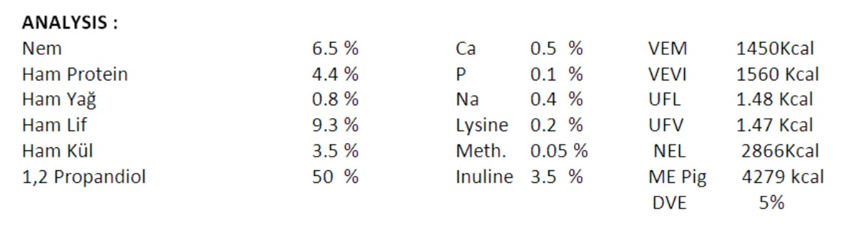 ● İlk ay laktasyon dönemi: Yemin içine %3 yada 500g/ hayvan başına/günde