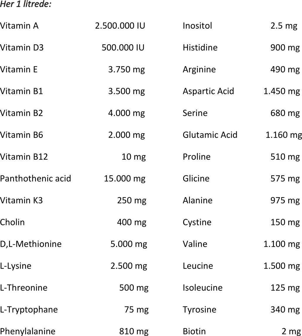 Kaliteli beslenmeyi sağlayan, enerjiyi artıran ve büyümeyi geliştiren multi vitamin ve amino asitlerin karışımı, bağışıklığı güçlendiren sıvı nutrisyonel.