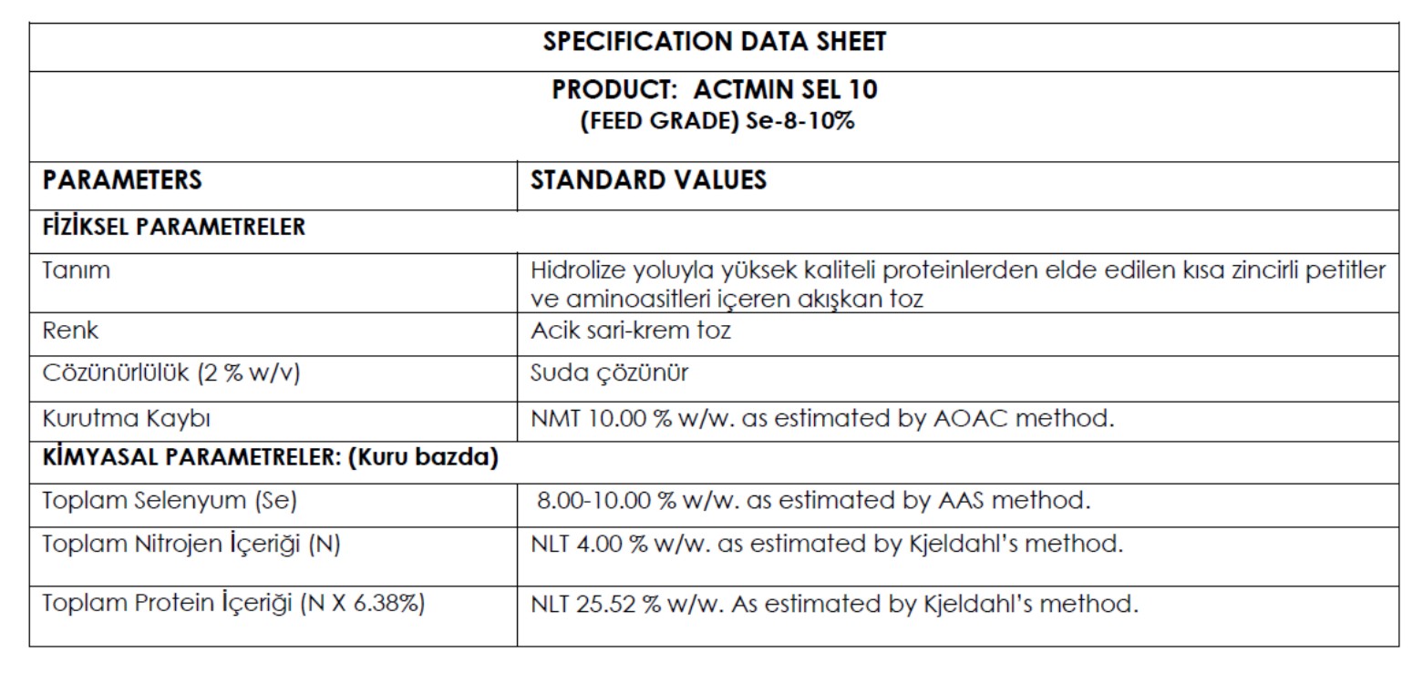 ACTMIN SEL 10% , hidrolize soya proteini aminoasitleriyle şelatlanmasıyla elde edilen şelatlı çinko ürünüdür.